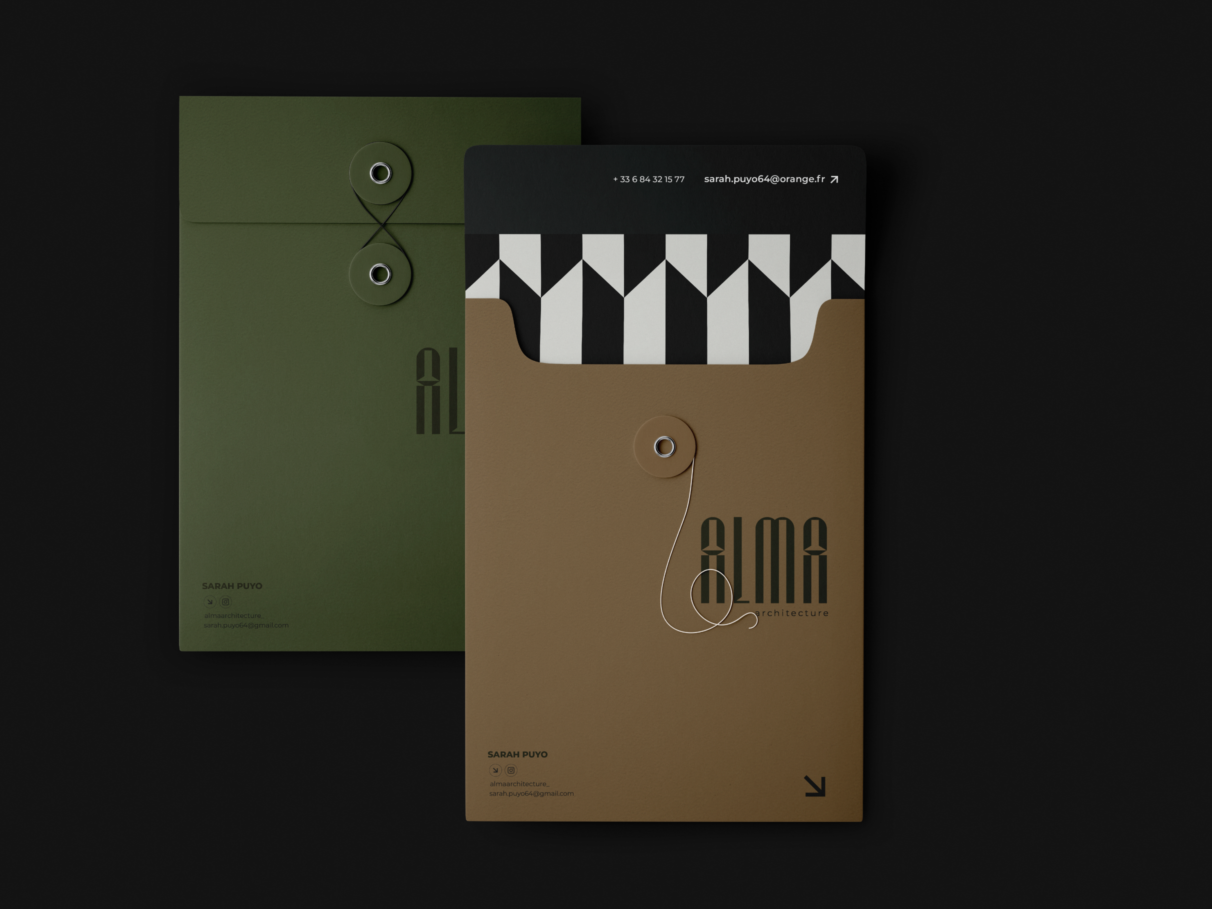 L’identité visuelle est ancrée dans une esthétique autour de la verticalité, évoquant la construction et l’élévation. Au coeur du logo, la contreforme du «A» évoque subtilement la règle de l’architecte, le kutch, rappelant l’engagement envers la précision et l’excellence. La typographie utilisée est comme sculptée, renforçant l’engagement envers les détails et ajoutant du caractère à l’identité. En associant le logo à un univers graphique riche en motifs et en jeux de lignes de construction, l’importance accordée à la diversité des matériaux et des détails est soulignée, tout en mettant en valeur la rigueur et le professionnalisme.
