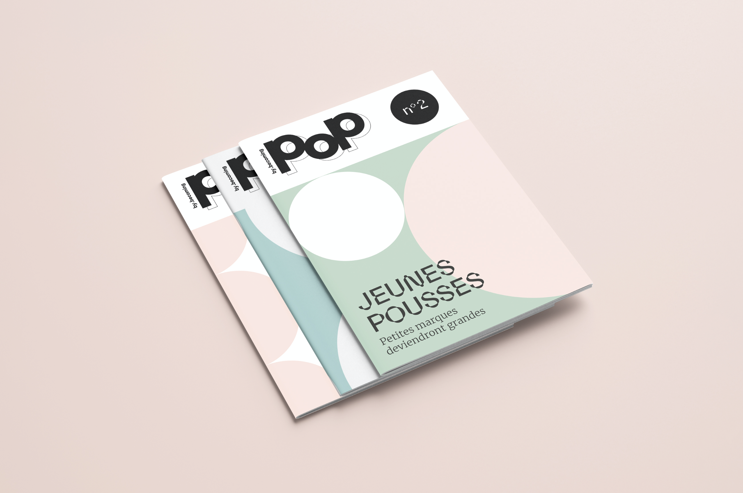 Pop c’est une collection d’édition qui raconte la veille du plannique stratétique au sein de l’entreprise becoming. La demande était de créer à partir de l’identité mère, une identité propre à Pop, qui se doit de respecter les codes de becoming mais charge à elle de marquer le pas de côté pour assumer une charte éditoriale propre à cette sous-marque. Les magazines font la part belle aux visuels dans des compositions épurées et graphiques.