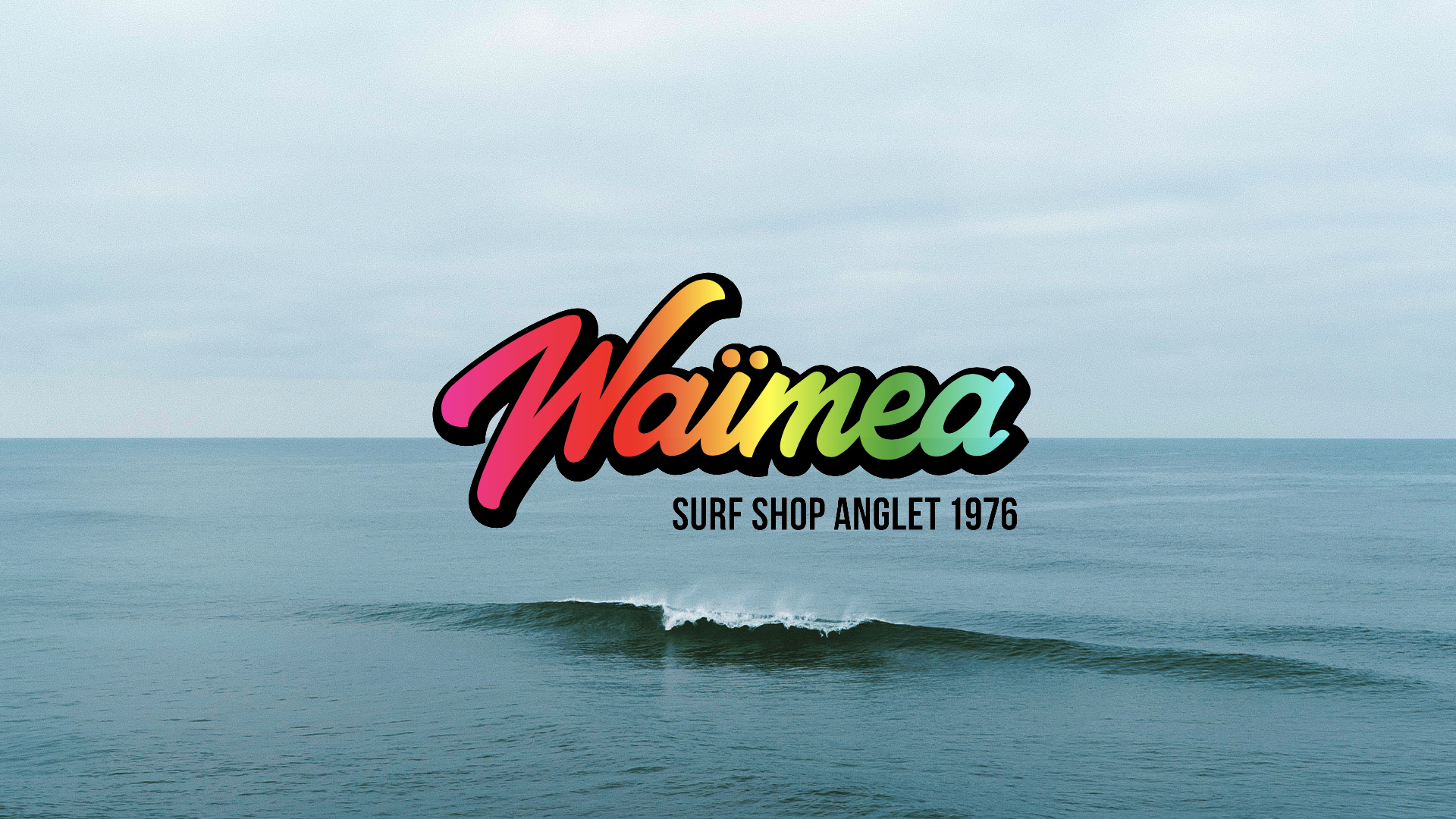 Un esprit vintage aux couleurs arc-en-ciel, dans la lignée du surf hawaïen des années 70. La typographie, dessinée sur mesure, s’accompagne d’un emblème « wa » : clin d’œil à Waimea, il condense l’énergie d’une vague dans un a raccourci et stylisé.
